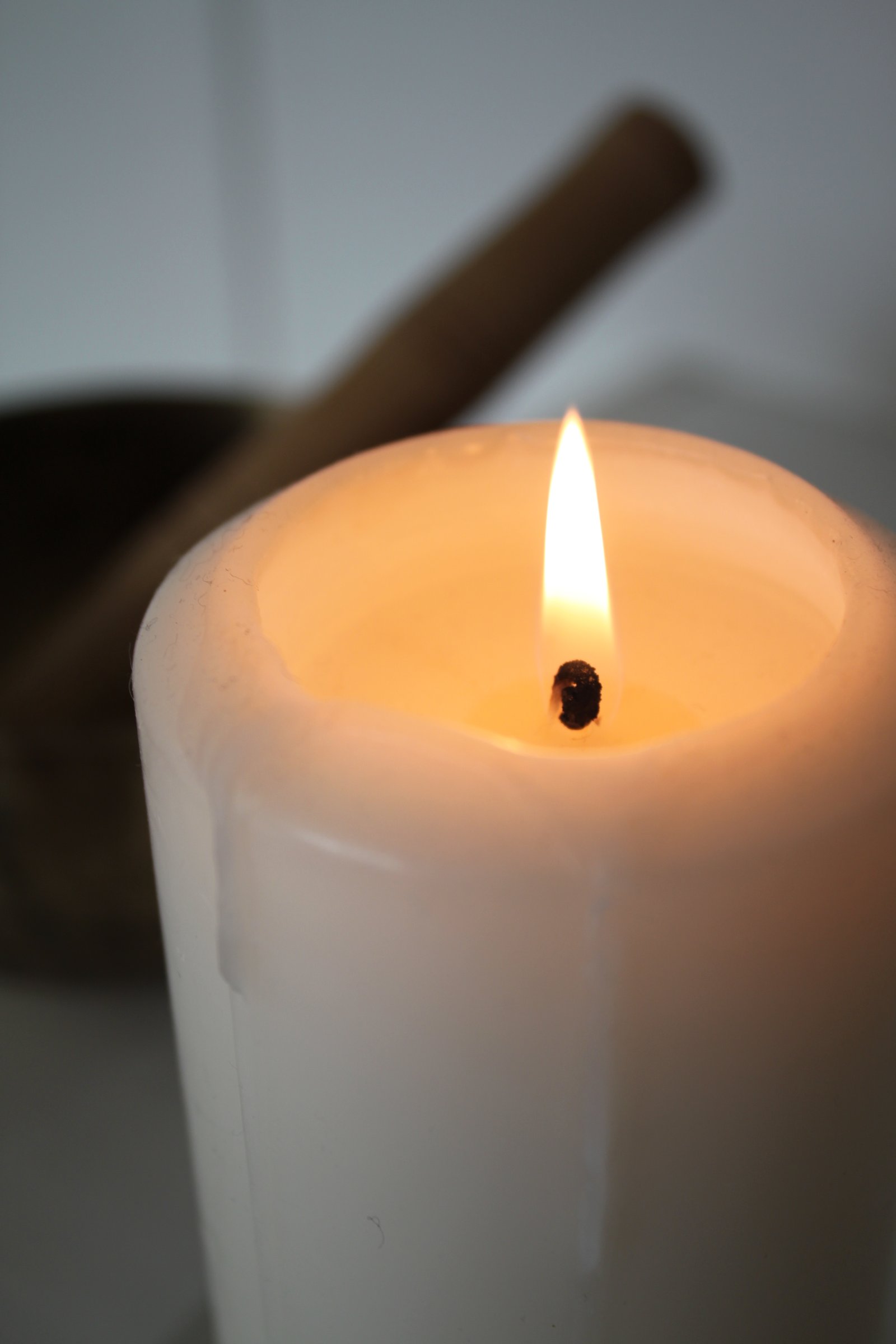 Fixez la flamme pendant 1 à 2 minutes. Visualisez votre souffle dans l'axe du corps à l'image de la verticalité de la flamme. Puis fermez les yeux, sans bouger et observez l'image rémanente le plus longtemps possible tout en continuant à visualiser le souffle dans l'axe du corps.